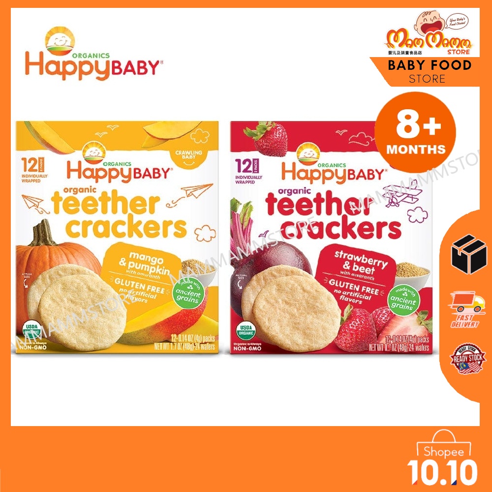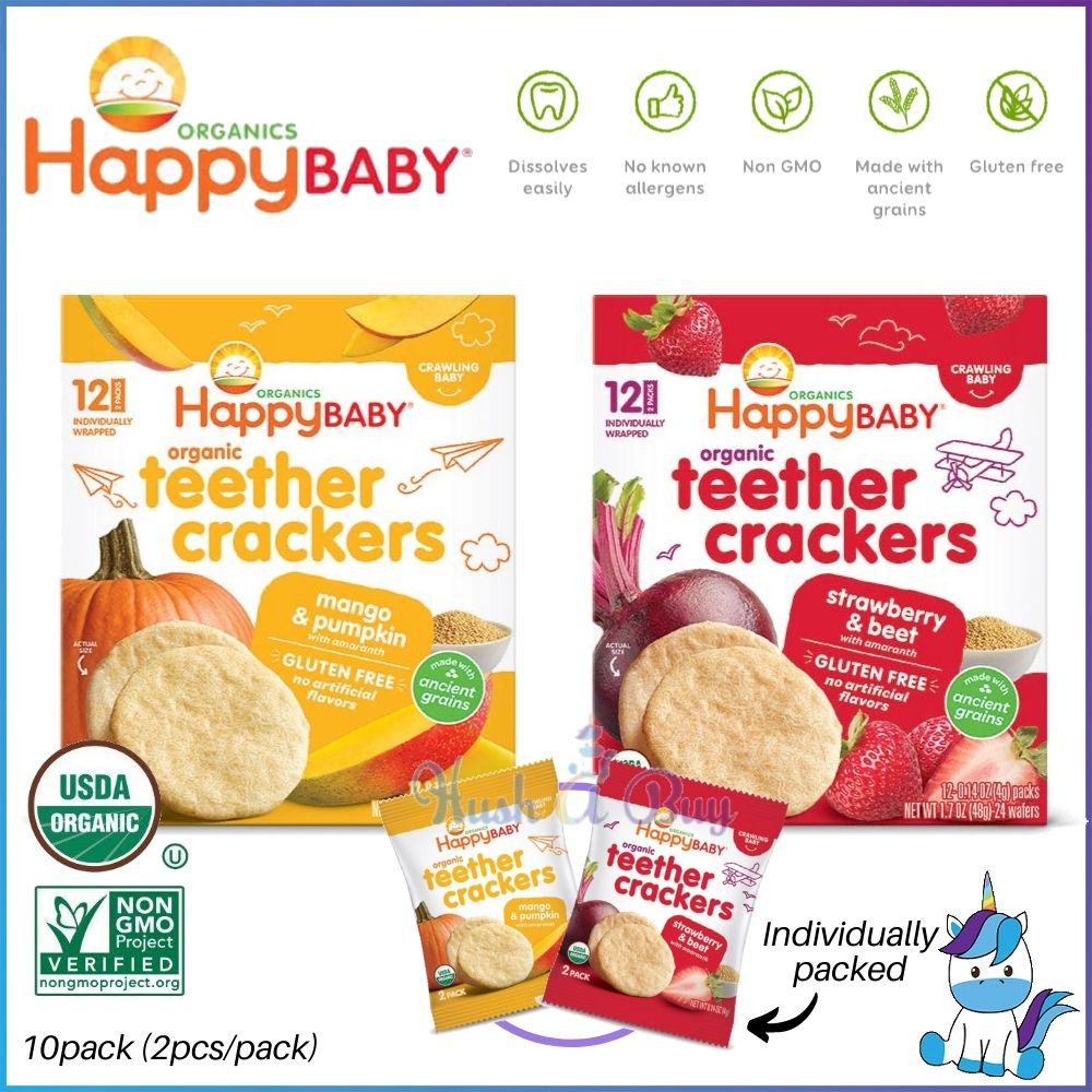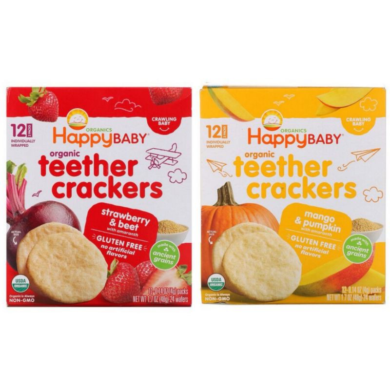 HappyBaby Superfood Kale Spinach Gluten Free Puffs - 21oz. HappyBaby Mango Pumpkin Organic Teether Crackers - 12ct168oz. Our Teether Crackers are a tasty organic baby snack.