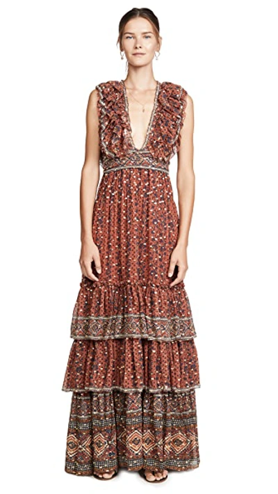 Shop Ulla Johnson Adelina Fil Coupé Maxi Dress In Multicoloured from 400 stores starting at 1195. The silk-blend design is shaped with a plunging V-neckline that is adorned with ruffles and flecked with golden fil coupé. Laying flat - see photos.